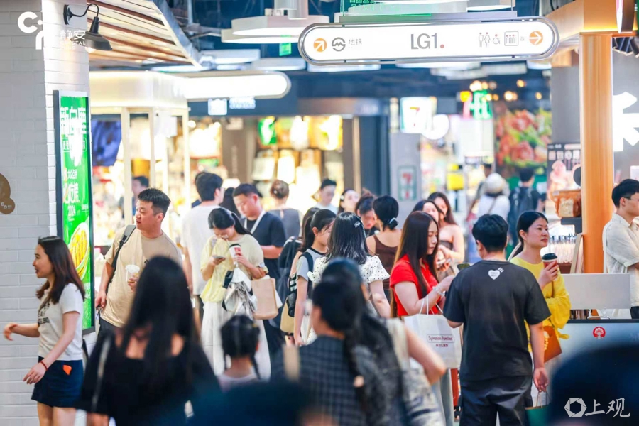 工作日的中午,在“CP静安”,正是就餐高峰时,不少餐饮店铺的门口坐了等位的消费者;在一些人气当红品牌店铺,也时常可见三三两两的消费者穿梭于货架间。