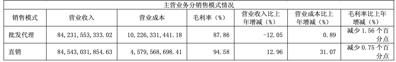 与此同时,批发代理渠道营收842.32亿元,同比下降12.05%。